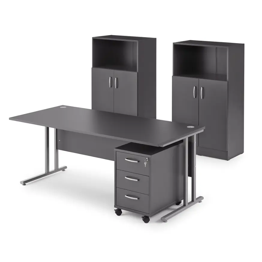 Ein komplettes Schreibtischpaket mit Möbeln aus unserer FLEXUS-Serie. Diese Serie zeichnet sich durch ihre strapazierfähigen, pflegeleichten und vielseitig einsetzbaren Möbel aus. Die Möbel passen in die meisten Büroumgebungen. Mit Möbeln der FLEXUS-Serie ist es ganz einfach, eine Komplettlösung zu schaffen, die alle Ihre Bedürfnisse erfüllt. Alle Möbel sind aus strapazierfähigem und pflegeleichtem Laminat hergestellt.